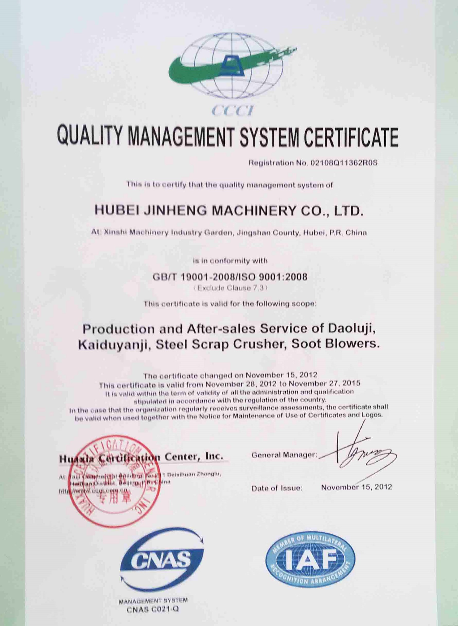 公司十分注重質量管理體系的建設,本著“品質保證一切,誠信鑄就未來”的 發展宗旨,先后完善了IS09001和SO14001雙體系建設,獲得多項國家發明專 利和實用新型專利,是湖北省高薪技術企業。